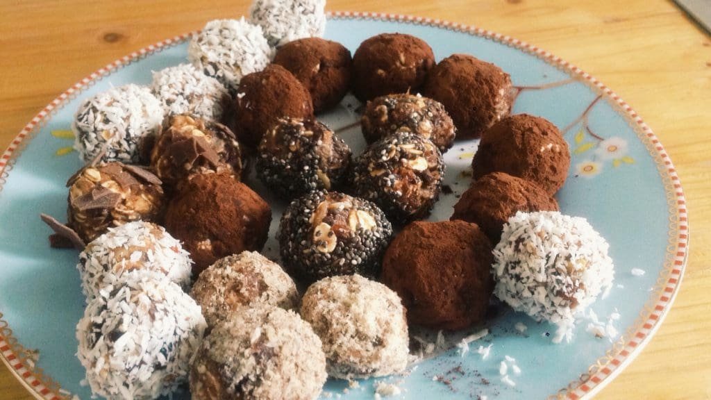 Wir entscheiden uns für einen Do-It-Yourself Workshop und formen kurze Zeit später gesunde Snacks in Form von Energyballs. Die Basis für die Leckerei bilden über Nacht eingeweichte Datteln, gehackte Zartbitterschokolade, Nussmuss (Mandel und Cashewmus waren meine Favoriten) und Haferflocken. Diese kleinen zuckerfreien Energyballs werden in Größe eines Tischtennisballs geformt und dann in Tellern mit Chiasamen, Kokosraspeln, Kakaonibs, Mandelkrokant oder auch Amaranth gerollt, sind ein super gesunder Snack, füllen den Magen und schmecken einfach fantastisch. Gut gestärkt geht’s damit zum Acro Yoga Jam. Fliegen und abhängen. Hooray!
