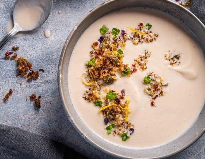 Cremesuppen schmecken mit einem kreativen Topping gleich doppelt so gut. Ein Topping bietet überraschende Kontraste – in Geschmack und Konsistenz. Das Rezept für diese frische und intensive Gremolata zu der sanften Blumenkohlsuppe von den Profiköchinnen Jessica Wolf und Kristina Mohr stammt aus ihrem Kochbuch „Gemüse feiern! Genial zubereitet – grandios serviert.“