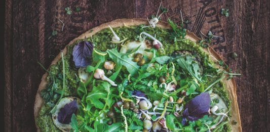 Soulfood vegan von Katharina Küllmer – Socca-Pizza mit Mandel-Rucola-Pesto