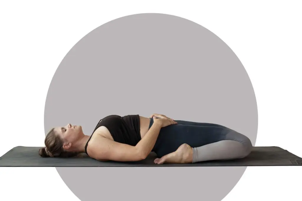 Stütze deine Hände im Sitzen locker hinter deinem Rücken ab. Stelle deine Füße etwa mattenbreit und beginne mit einer Ausatmung die Knie wie einen Scheibenwischer hin und her zu bewegen. Spüre, wie du dabei nach all den Rückbeugen deine Hüften und die gesamte Wirbelsäule lockerst und mobilisierst. Werde mit jedem Atemzug innerlich ruhiger und nimm wahr, wie sich wärmende Energie in dir ausbreitet.