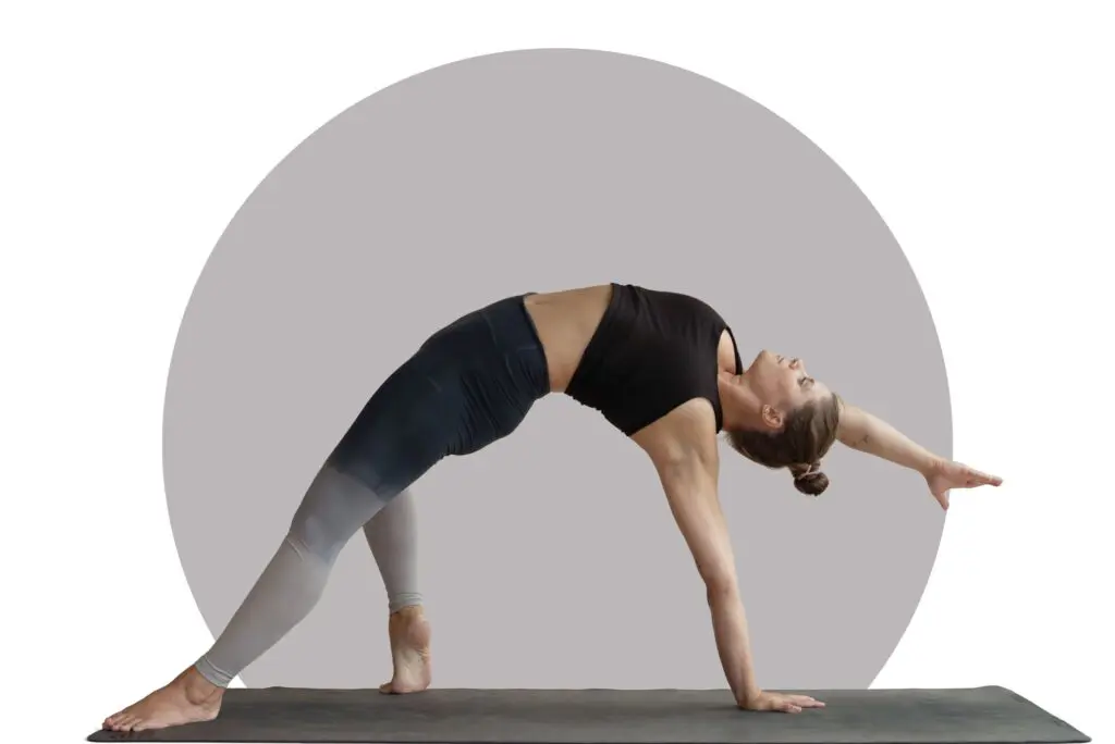 Löse den tanzenden Krieger auf und setze dich auf die Matte. Strecke dein linkes Bein lang nach vorn aus, stelle den rechten Fuß auf und setze deine linke Hand hinter deinem Rücken auf die Matte. Mit einer Einatmung hebst du das Becken und streckst den rechten Arm über dem Kopf nach hinten. Stelle dir vor, wie du die Energie nach oben hin strahlen lässt. Vorsicht: Taste dich zunächst behutsam an diese intensive Herzöffnung heran. Je weiter rechter Fuß und linke Hand voneinander entfernt sind, desto einfacher ist sie.