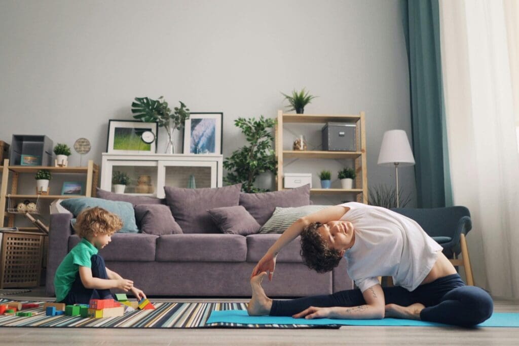 Als wieder mal Süßigkeiten aus der Küche verschwunden waren, stellte Krishnas Mutter ihren kleinen Sprössling zur Rede. Als sie in seinen offenen Mund schaute, um Reste vom Milchkuchen zu finden, sah sie nicht nur das Dessert. Sondern nach der Geschichte gleich das ganze Universum darin. Auf diese Weise brachte der kleine Krishna seine Mutter dazu, sich der Selbstverwirklichung zu widmen. Bei uns scheint es manchmal umgekehrt zu sein. Bevor die Kinder kamen, hatten wir es noch einfach, ins Yogastudio zu gehen oder im Wohnzimmer die Matte auszurollen. Jetzt ist entweder keine Zeit oder kein Raum da, um in Ruhe zu üben.